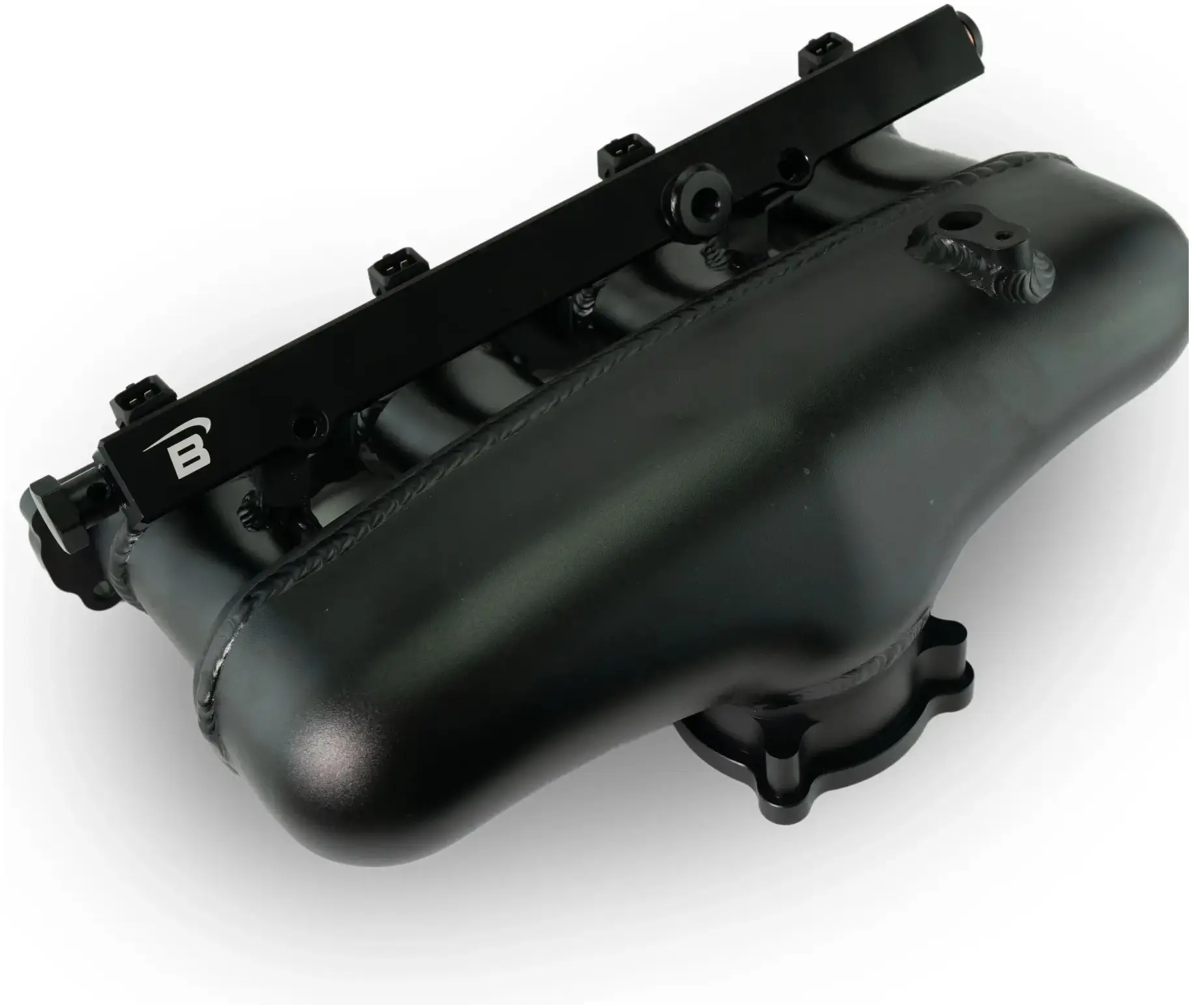 In combinazione, è possibile installare un secondo set di ugelli di iniezione sul lato del raccordo, che iniettano direttamente nel collettore di aspirazione. Soprattutto nei motori elaborati, il sistema di iniezione diretta standard raggiunge rapidamente i suoi limiti e finisce per limitare le prestazioni. Qui vi offriamo l’opportunità di contrastare questa situazione. Il carburante nel collettore di aspirazione raffredda la miscela carburante/aria, con un ulteriore effetto positivo.