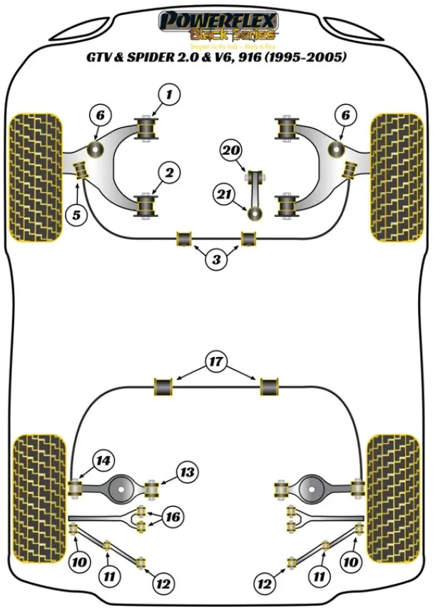 Powerflex Alfa Romeo GTV & Spider 916 2.0 & V6 (1995-2005) Stabilizzatore motore superiore alla boccola del telaio Fig.21 (1) PFF1-822BLK