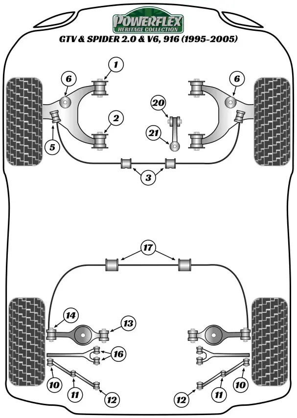 Powerflex Alfa Romeo GTV & Spider 916 2.0 & V6 (1995-2005) Supporto interno molla inferiore posteriore Fig.13 (2) PFR1-713H