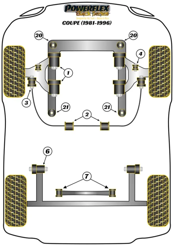 Powerflex Audi 80 / 90 – incl. S2/RS2 & Quattro (1976 – 2000) Coupe (1981-1996) Boccola di collegamento ARB anteriore al braccio oscillante da 16 mm Fig.3 (2) PFF3-105BLK