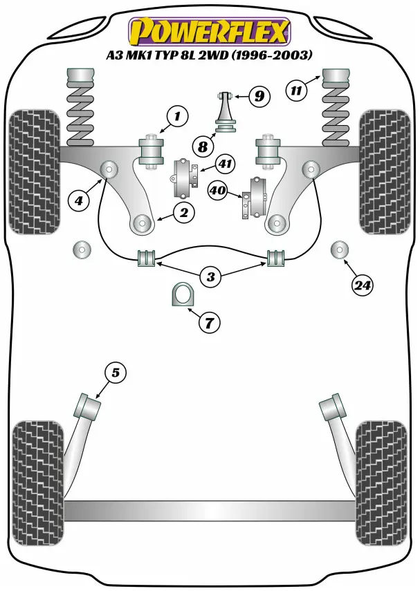 Powerflex Audi A3 MK1 8L 2WD (1996-2003) Boccola posteriore del braccio oscillante anteriore Fig.2 (2) PFF85-410H