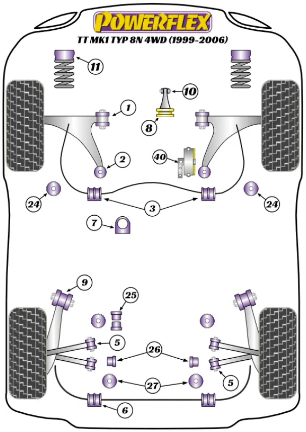 Powerflex Audi TT Mk1 Typ 8N 4WD (1999-2006) Boccola posteriore del braccio oscillante anteriore (fuso) Fig.2 (2) PFF3-610
