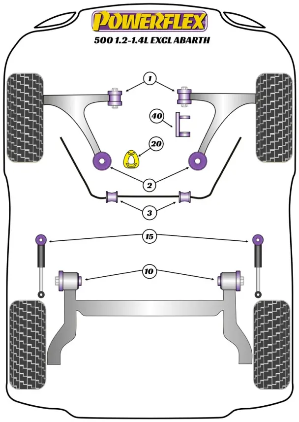 Powerflex Fiat 500 1.2-1.4L escl. Abarth (2007 in poi) Inserto supporto motore inferiore Fig.20 (1) PFF16-520