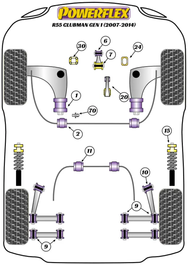 Powerflex Mini R55 Clubman Gen 1 (2007 – 2014) Boccola posteriore del braccio oscillante anteriore Fig.1 (2) PFF5-201