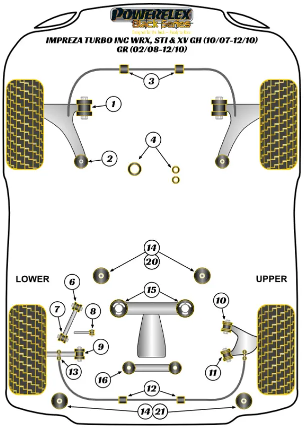 Powerflex Subaru Impreza GR, GH (2007 – 2011) & WRX + STI (2007 – 2014) Boccola anteriore interna del braccio superiore posteriore REGOLABILE Fig.10 (2) PFR69-510GBLK