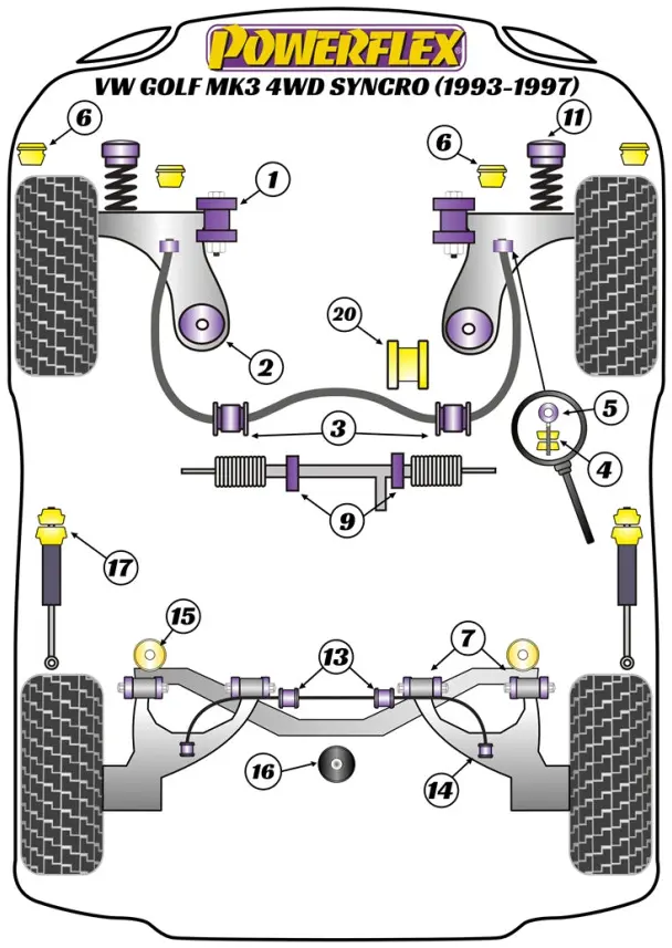 Powerflex Volkswagen Golf Mk3 4WD Syncro (1993 – 1997) Kit bulloni di camber PowerAlign (12 mm x 60 mm) (1) PFA100-12