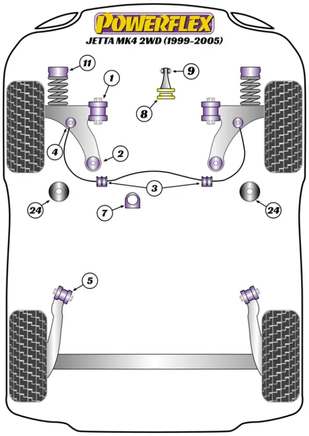 Powerflex Volkswagen Jetta MK4 A4 2WD (1999-2005) Boccola anteriore del braccio oscillante anteriore 30mm Fig.1 (2) PFF85-201