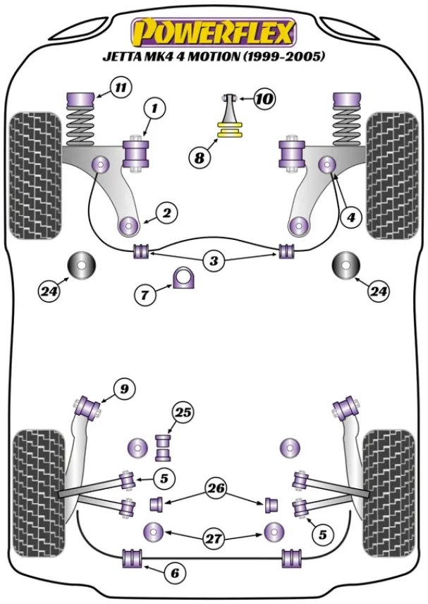 Powerflex Volkswagen Jetta MK4 A4 4Motion (1999-2005) Supporto barra antirollio posteriore 15mm Fig.6 (2) PFR3-511-15