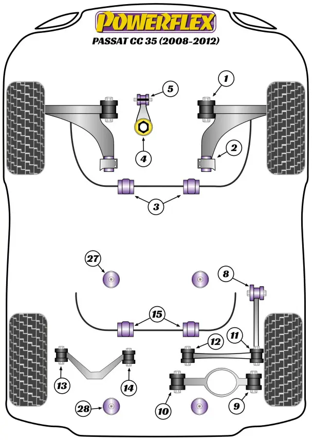 Powerflex Volkswagen Passat CC 35 (2008-2012) Inserto supporto motore inferiore (grande) benzina/diesel ottimizzato Fig.4 (1) PFF85-704