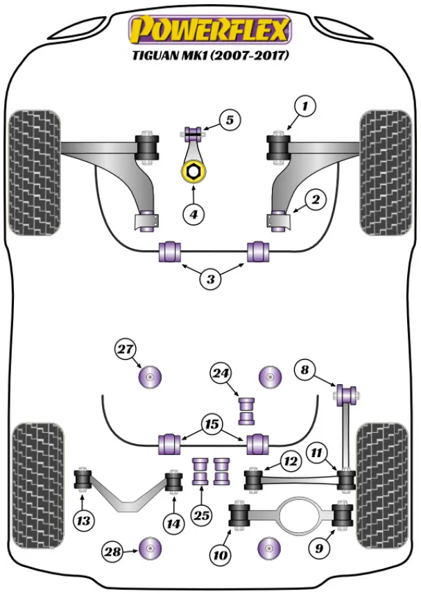 Powerflex Volkswagen Tiguan 5N MK1 (2007 – 2017) Barra di collegamento posteriore alla boccola anteriore del telaio Fig.8 (2) PFR85-508