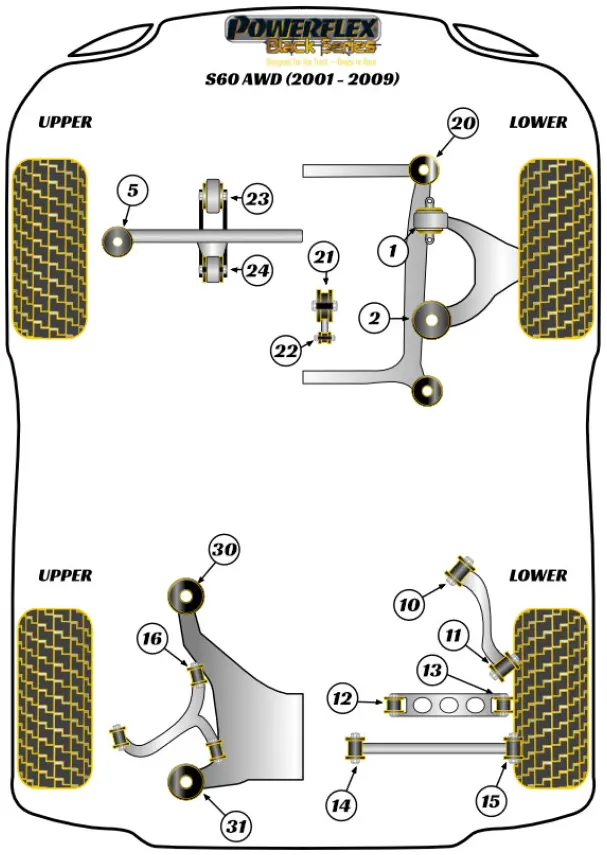 Powerflex Volvo S60 AWD (2001 – 2009) Boccola del braccio oscillante posteriore al telaio ausiliario Fig.10 (2) PFR88-605BLK